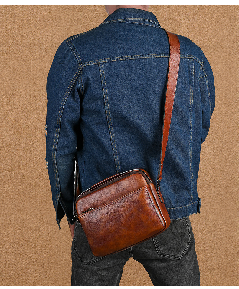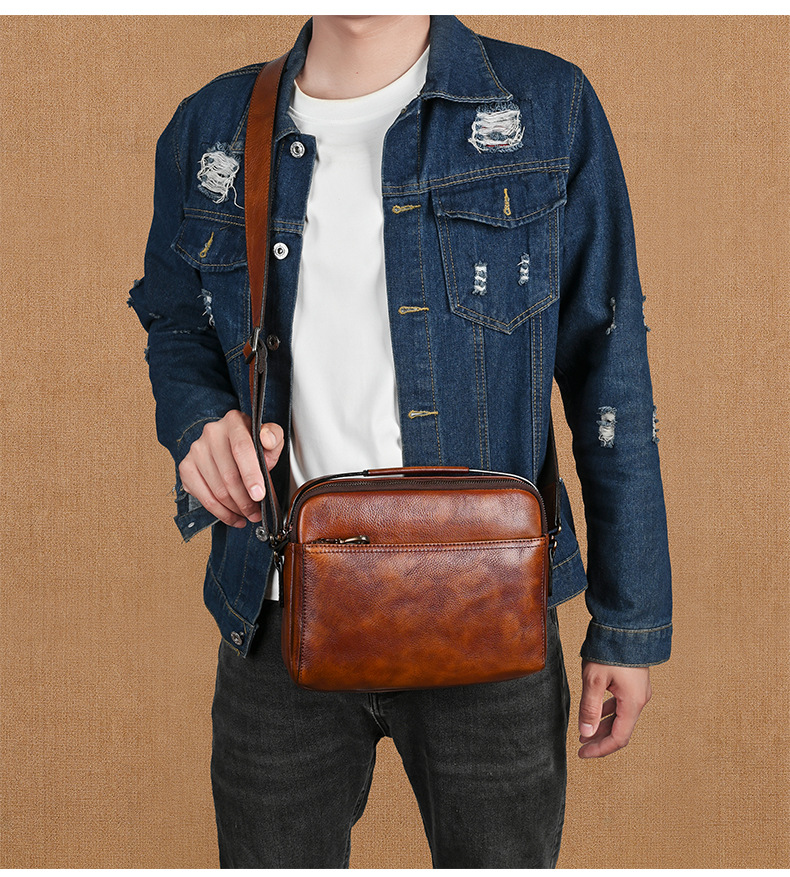 Men’s Vintage Genuine Leather Crossbody Bag – Casual Top-Grain Leather Shoulder Bag